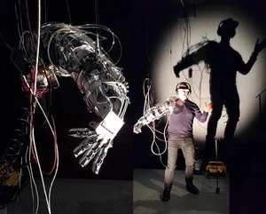 Stelarc experiments with alternative anatomical architectures. He has performed with a Third Hand, a Stomach Sculpture and with Exoskeleton, a 6-legged walking robot. Fractal Flesh, Ping Body and Parasite are internet performances that explore remote and involuntary choreography. He is surgically constructing and stem-cell growing an ear on his arm that will be electronically augmented and internet enabled. Recent performances include ReWired / ReMixed that incorporates an outsourcing of his senses and a sharing of his agency. In 1996 he was made an Honorary Professor of Art and Robotics, Carnegie Mellon University and in 2002 was awarded an Honorary Doctorate of Laws by Monash University. In 2010 he was awarded the Ars Electronica Hybrid Arts Prize. In 2015 he received the Australia Council’s Emerging and Experimental Arts Award. In 2016 he was awarded an Honorary Doctorate from the Ionian University, Corfu. His artwork is represented by Scott Livesey Galleries, Melbourne. www.stelarc.org